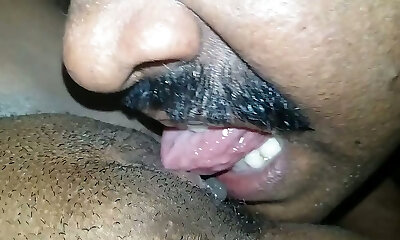 Horny mustached buddy tongues his wife's Indian pussy well