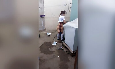 School girls nude demonstrate peeing in bathroom and making video for her bf and pie in her panty