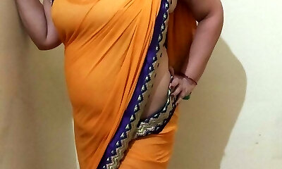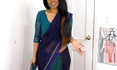 tamilische milf stiefmutter steckt mit weißem saree und schwarzer bluse unter dem bett, wenn sie unter dem bett putzt, dann fickt stiefsohn sie